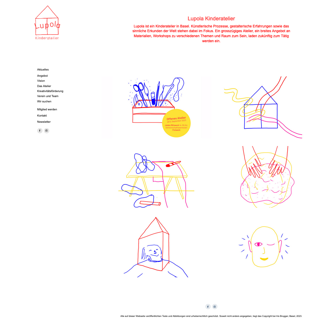 Konzept und Gestaltung des Gesmtauftrittes vom Lupola KInderatelier. Gestaltung von Logo, Illustrationen sowie der Website lupola.ch. Sticker «Offenes Atelier» sowie Oeuil éxterieur: Gianna Burghartz.